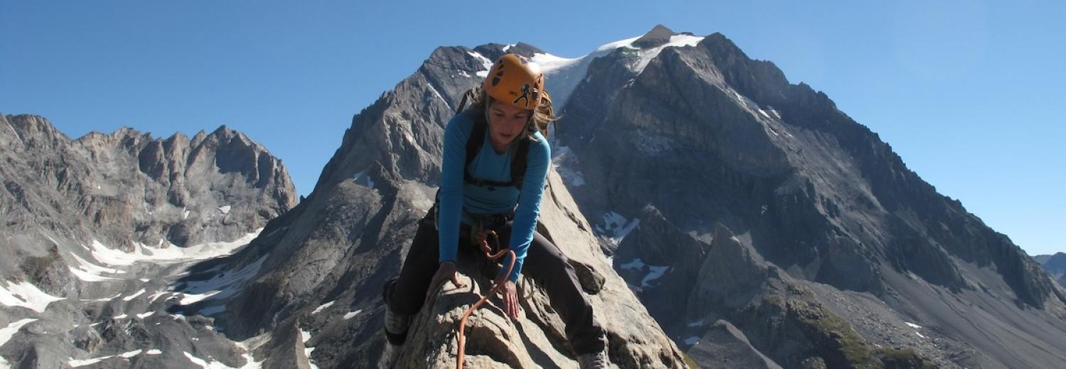 Jolie course d'arête peu difficile avec un rocher de bonne qualité, sur un fil aérien et étroit.