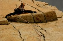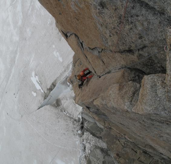Très intéressante escalade, exclusivement en fissures, à l'exception de la dernière longeur.