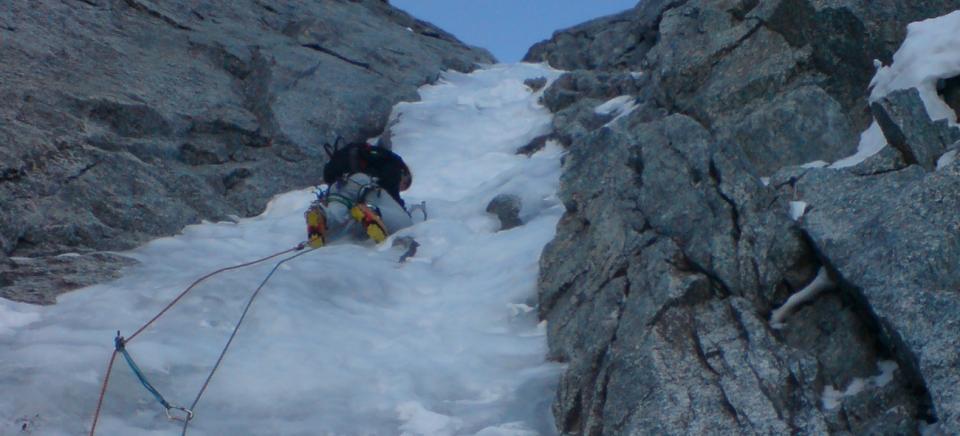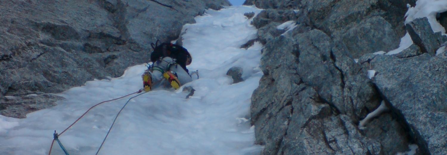 Belle goulotte classique dans le fond du cirque d'argentière. Trois passages en glace 70° / 80°. Descente en rappels (équipés).