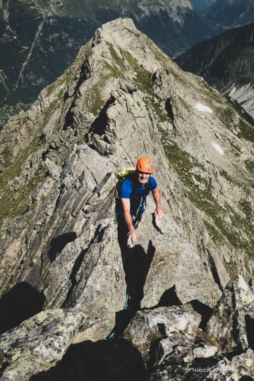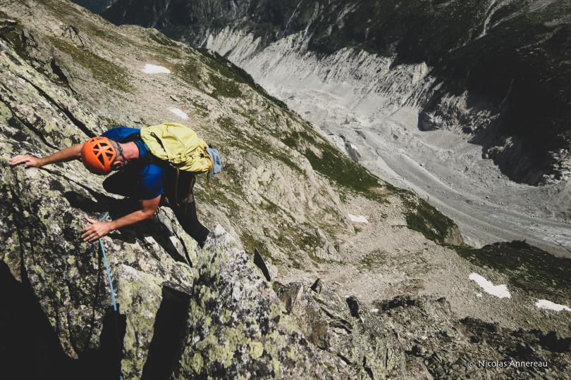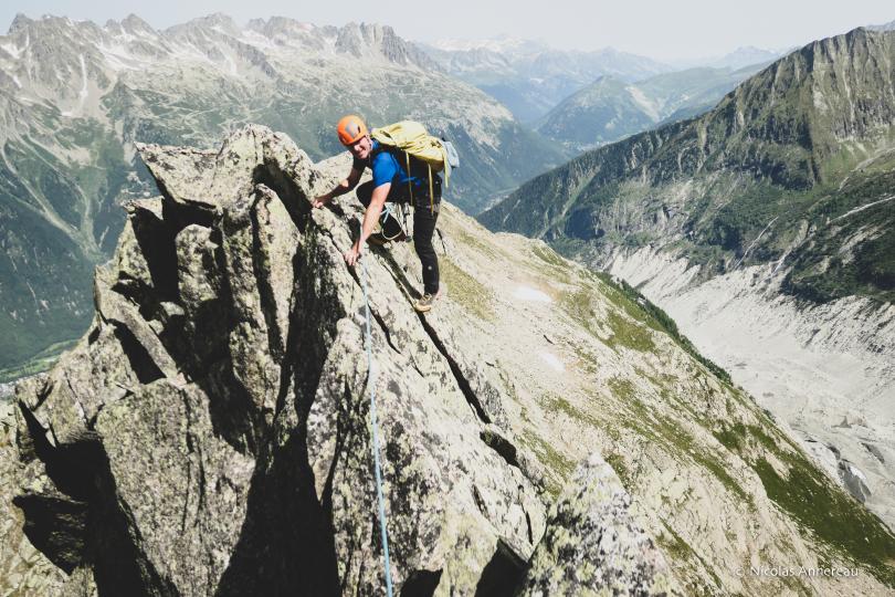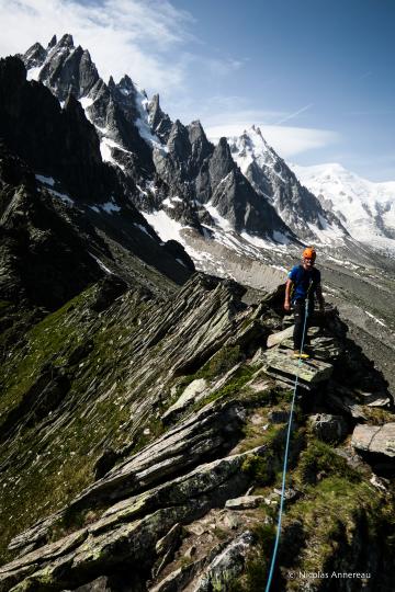 Longue course d'arête jamais difficile idéale pour s'initier au Granit Chamoniard avec une belle ambiance et une vue privilégiée sur les Aiguilles de Chamonix et la mer de glace.
