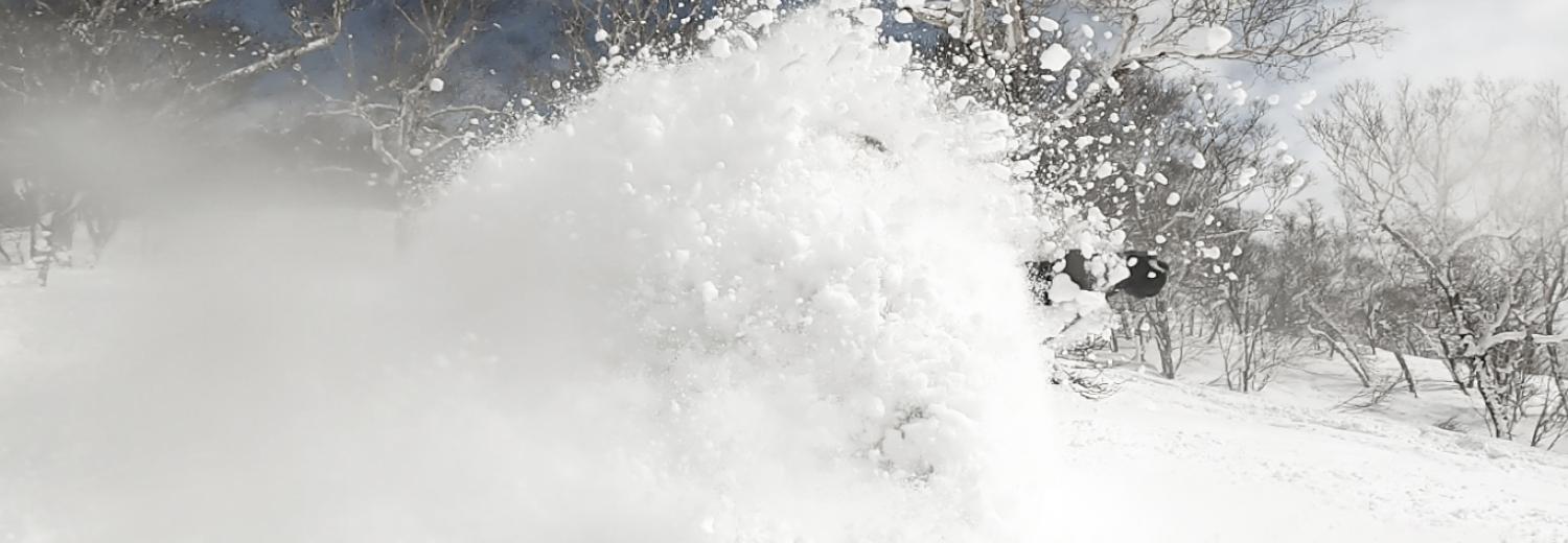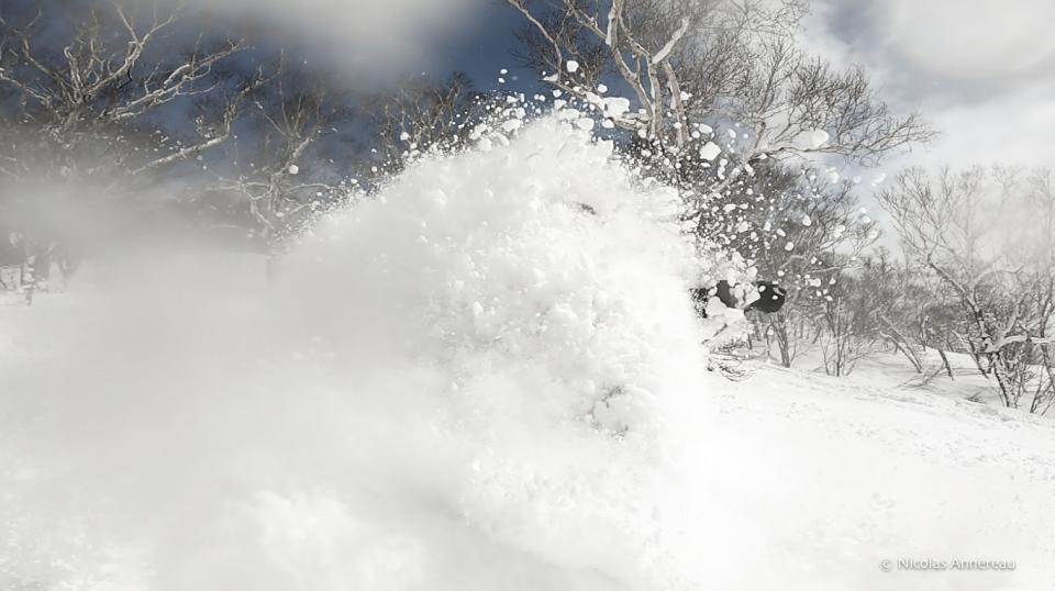 Ski hors piste sur l'île d'Hokkaido au Japon.