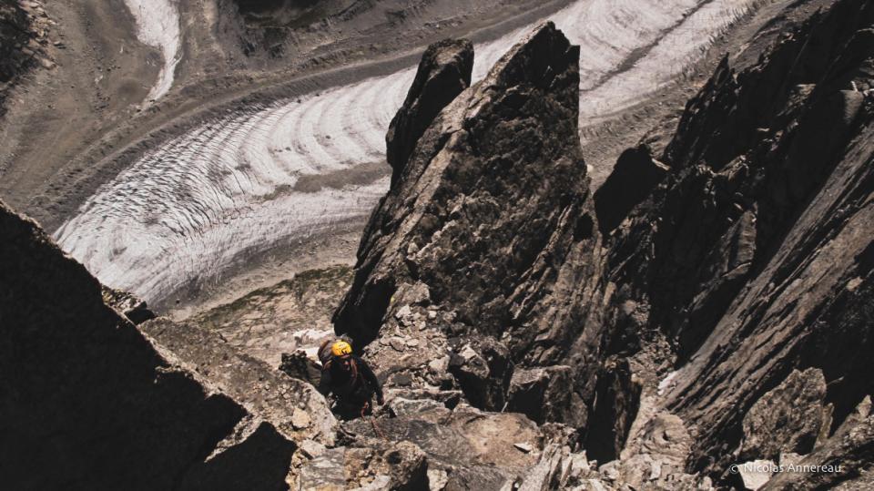Avec une approche glaciaire, une succession de dièdres, fissures et cheminées athlétiques, puis une course d'arête d'ampleur, la traversée Charmoz-Grépon est un itinéraire long et complexe réservé aux alpinistes aguerris. Une grande classique ne dépassant jamais le IV+ pour suivre les traces de l'illustre Mummery.