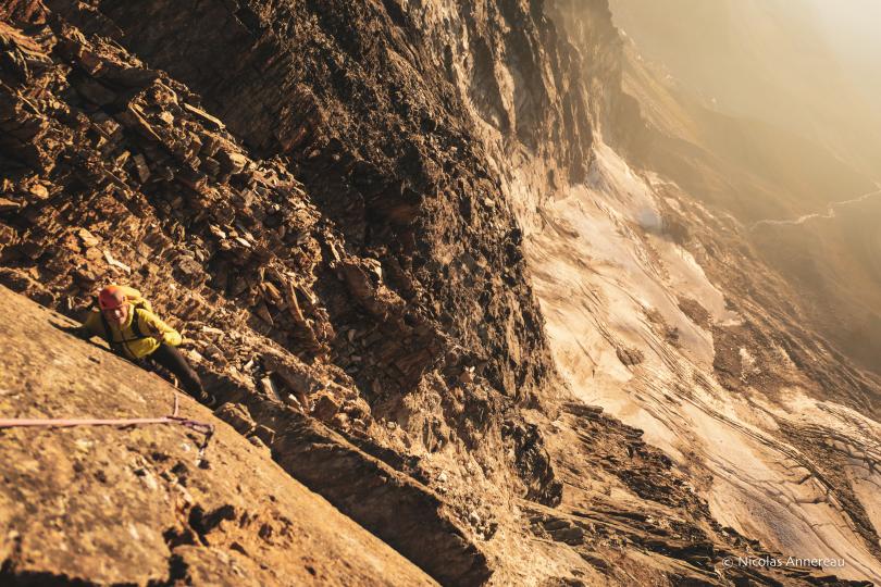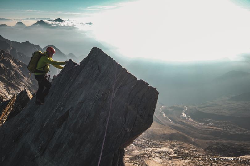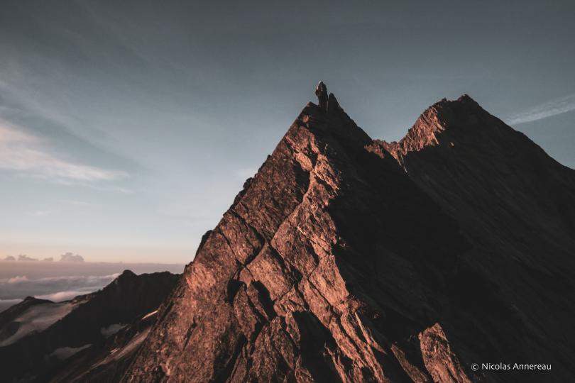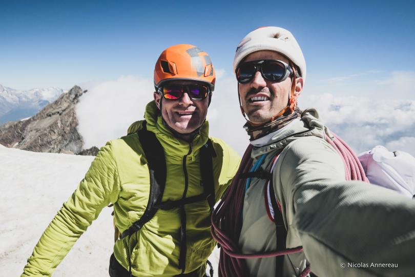 Sur le fil de l'arête l'ambiance est magnifique, après quelques heures d'effort nous atteignons le sommet et descendons par l'arête SE afin d'éviter la voie normale garnie de séracs et fortement déconseillée avec les conditions actuelles. Retour par le très beau vallon qui domine Saas Almagell.