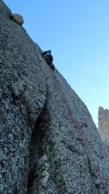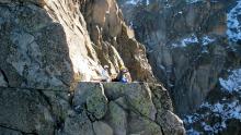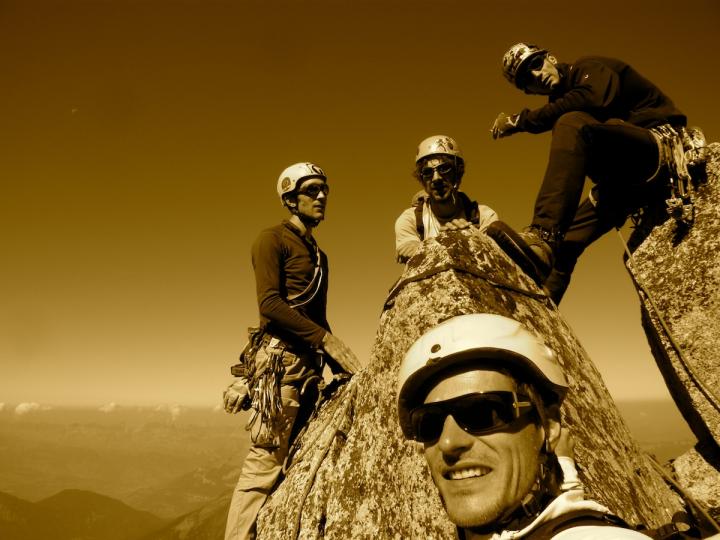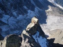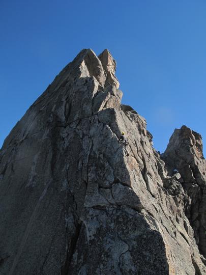 L'Aiguille des Pèlerins se trouve à mi-distance entre le sommet de l'Aiguille du Plan et les contreforts de l'Aiguille du Peigne. De belles longueurs une approche glaciaire, une vue saisissante sur les Aiguilles de Chamonix. L' Arête Grütter est une course complète qui se fait à la journée