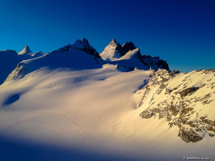 "Une belle Haute Route que les caprices de la météo n'ont pas réussi à gâcher. Au programme : un paysage à couper le souffle, de belles étapes, des soirées et des repas mémorables en cabane, du grand ski et de belles rencontres.