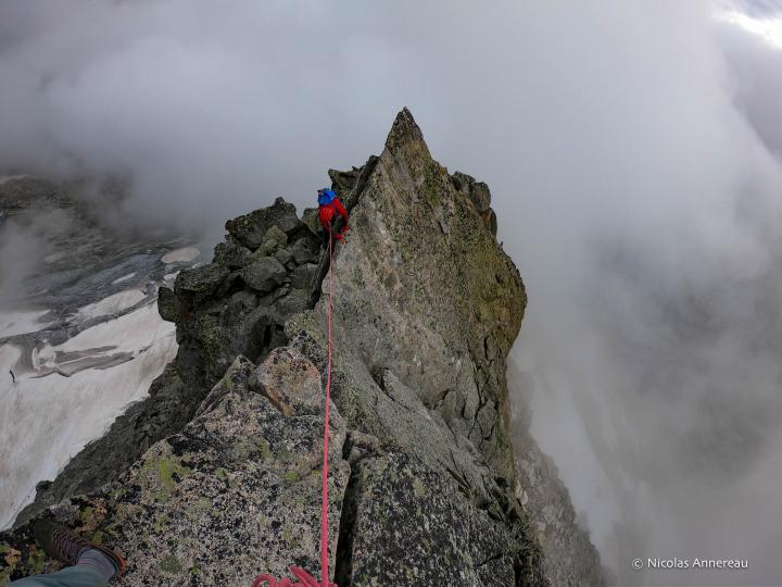 Beautiful weekend with Nico in the Bernese Oberland, climbing the east ridge of the Grosse Diamantstock, tucked at the end of the little known Bächlital valley. The climbing is never very hard and on outstanding granite, which has nothing to envy what can be found in the Mt Blanc range. A lot of atmosphere on the ridge coming in and out of the cloud cover: I’ll have to be back another day to enjoy the view from the summit, though!
