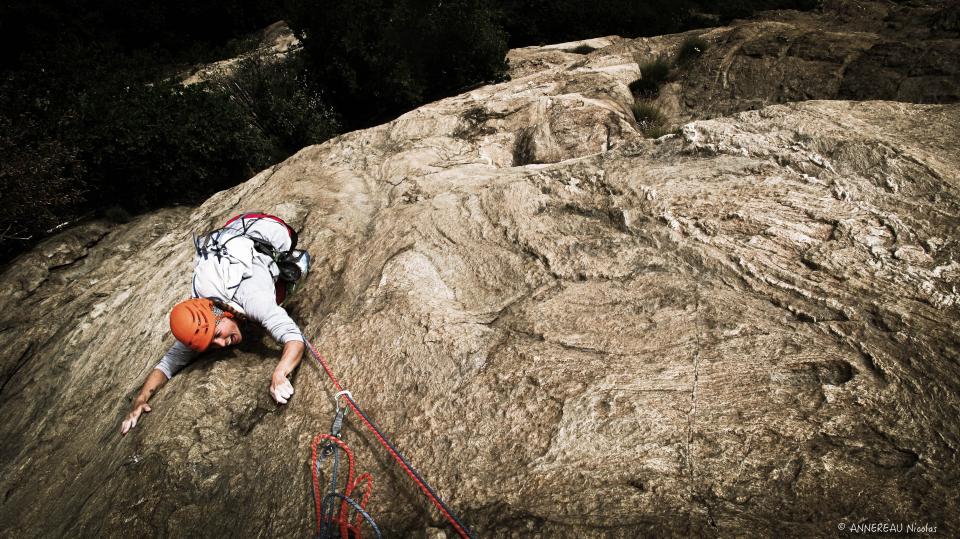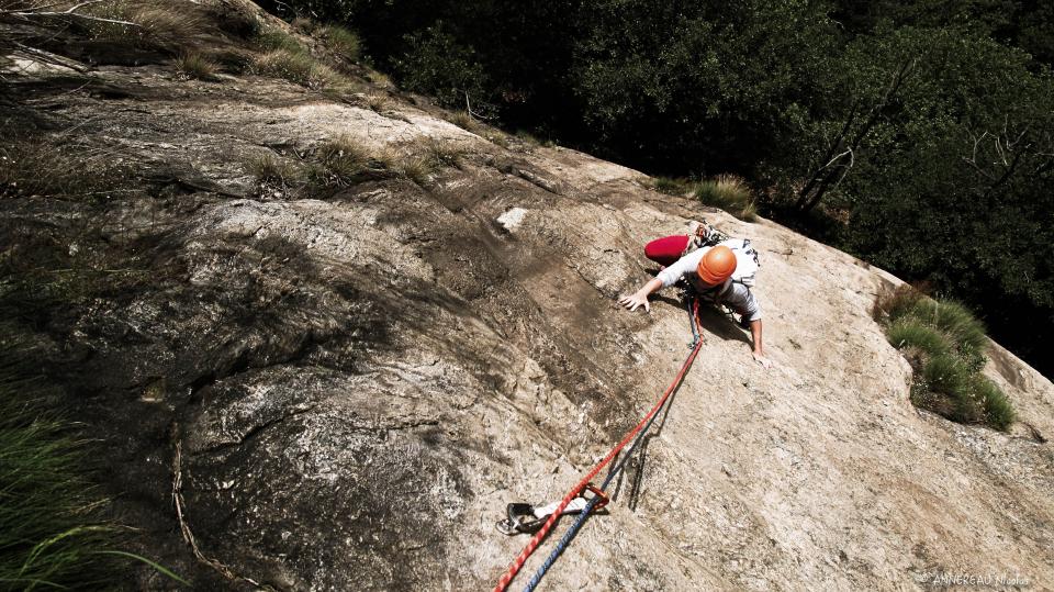 "Première voie en exterieur de la saison 2016 qui m'a remis directement bien sur les pieds. 10 longueurs qui vous tiennent en haleine tout le long: de la dalle non stop avec des petites prises pour les mains et pas grand choses pour les pieds! Le splendide rocher granitique est surprenament sculté. Cependant, à certains endroits, le rocher est un peu lisse sans prise et les cotations sont peut-etre un peu sous évaluées" Julie P