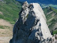 Une escalade aérienne magnifique sur le fil du plus haut sommet des Aravis avec Mont-Blanc en toile de fond. 12 longueurs de niveau 3c à 6c ou A0 ( 5c obligatoire). La voie de l’arête nord a été rééquipée par les Guides des Aravis. Très aérienne et très variée avec le doigt, la brèche, le passage équilibriste du rasoir puis le ressaut sommital un peu athlétique et la sortie directe en A0, c’est une des plus belles courses des préalpes. La croix de mélèze sommitale érigée en 1996, par la société locale de Secours en Montagne et les Guides-Accompagnateurs du Grand-Bornand clôture l’ascension. Une vue unique à 360 degrés du Jura Léman, aux sommets franco suisses du Chablais, la chaine du Mont-Blanc, la Vanoise, le Thabor, les Ecrins, les Bauges et les sommets de la chaîne des Aravis en enfilade. Il restera a descendre prudemment par la voie normale pour rejoindre le refuge puis le Col des Annes.