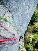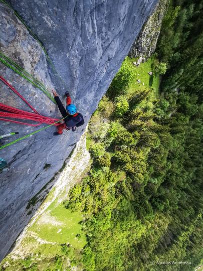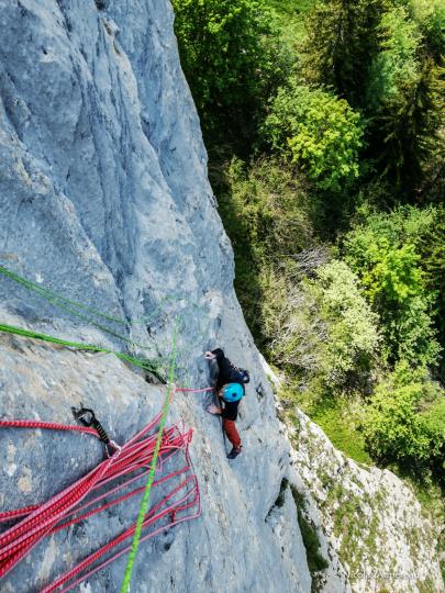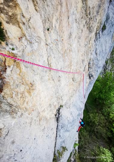 La voie "Roc d'enfer" au Rocher de Leschaux vaut le détour ! Escalade dans un très beau cadre au calme sur du rocher certes un peu bricolé mais néanmoins solide.