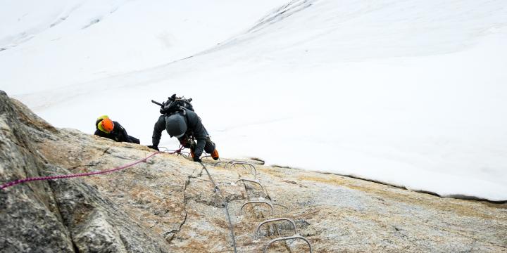 La via ferrata est aussi la pratique sportive de ce type d'itinéraire, une activité intermédiaire entre randonnée pédestre et escalade.
