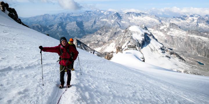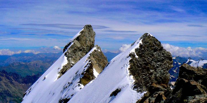 Situé dans le pittoresque vallon du Valsavaranche, le Grand Paradis, seul 4000m de la région, offre une voie normale accessible sur un joli sommet.