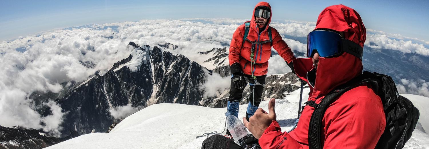 Au départ de la Pointe Helbronner (3 462m) atteinte avec le téléphérique du Skyway en Italie, la traversée des Aiguilles Marbrées (3 535m) est une course d’arête mixte dans le cadre majestueux du Glacier du Géant au cœur du Massif du Mont Blanc.