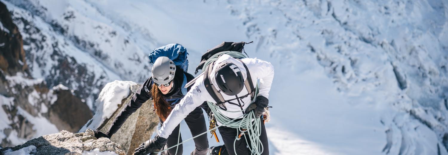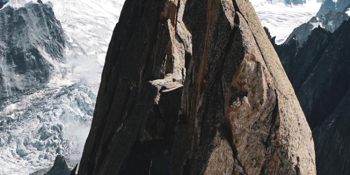 L'Arête Grütter propose de belles longueurs, une approche glaciaire évidente et une vue saisissante sur les Aiguilles de Chamonix.