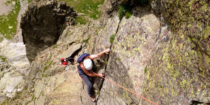 Escalade variée, équilibrée en dalles et fissures, assez soutenue (4/4c), quelques protections à poser Au départ de la gare supérieur de l'Index (2385m) par le téléphérique de la Flégère. une escalade jamais très difficile qui permet de découvrir le beau Gneiss des Aiguilles rouges.