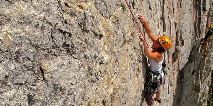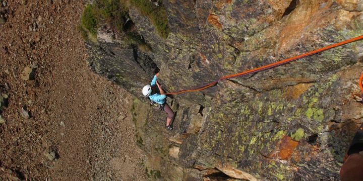 l'une des plus belles des Aiguilles Rouges. Escalade soutenue et raide dans le 6a sur un rocher de qualité.
