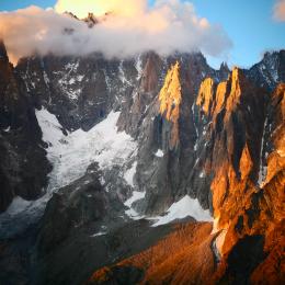 La face sud du Pouce se situe dans une combe secrète des Aiguilles Rouges. L'escalade de ce pain de sucre reste inoubliable de part son excellent gneiss, l'intelligence de son tracé, l'impressionnant surplomb et son caractère alpin.