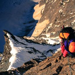 "Après une nuit au refuge de Gramusset, nous partons de bon matin pour la traversée NE de la Pointe Percée par l'arête du Doigt. L'approche se fait à travers les lappiaz de ce grand cirque de calcaire. Tout est calme, pas un bruit.