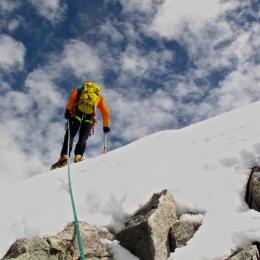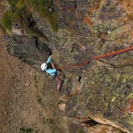 L'une des plus belles des Aiguilles Rouge où l'on trouve de grandes envolées soutenues et raides dans le 6a sur un rocher de qualité.