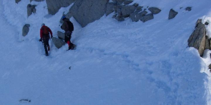Jolie course d'altitude complète (arête neigeuse aiguë et sections rocheuses en 3).